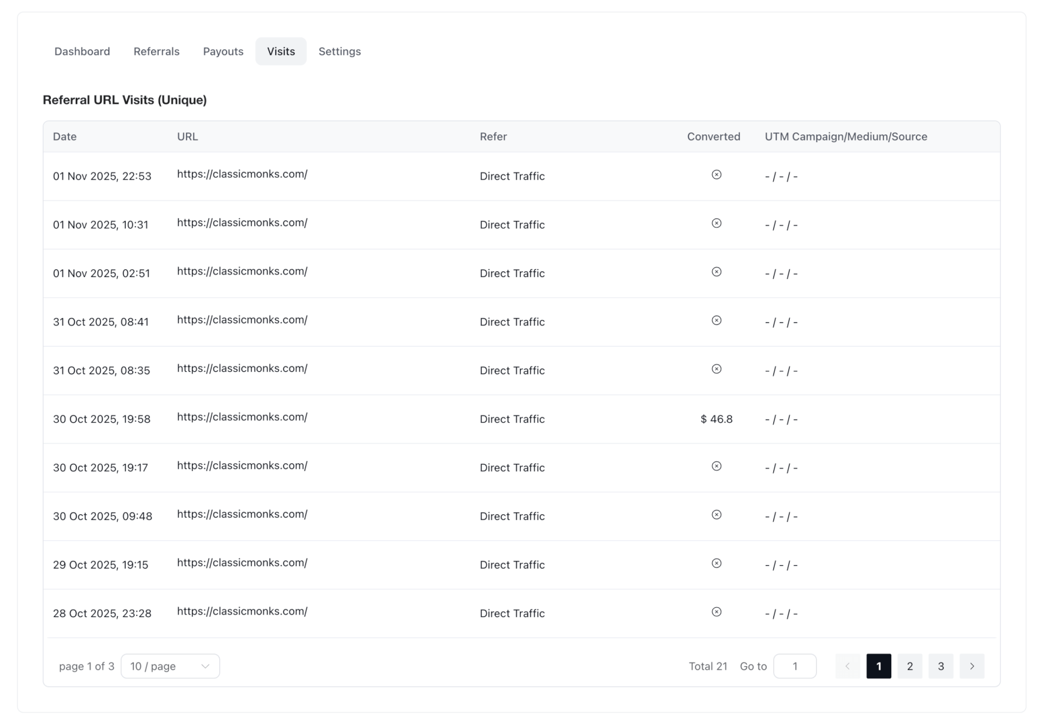 Once you sign up, your unique referral link will be sent over email and it is available instantly in your affiliate dashboard after approval.